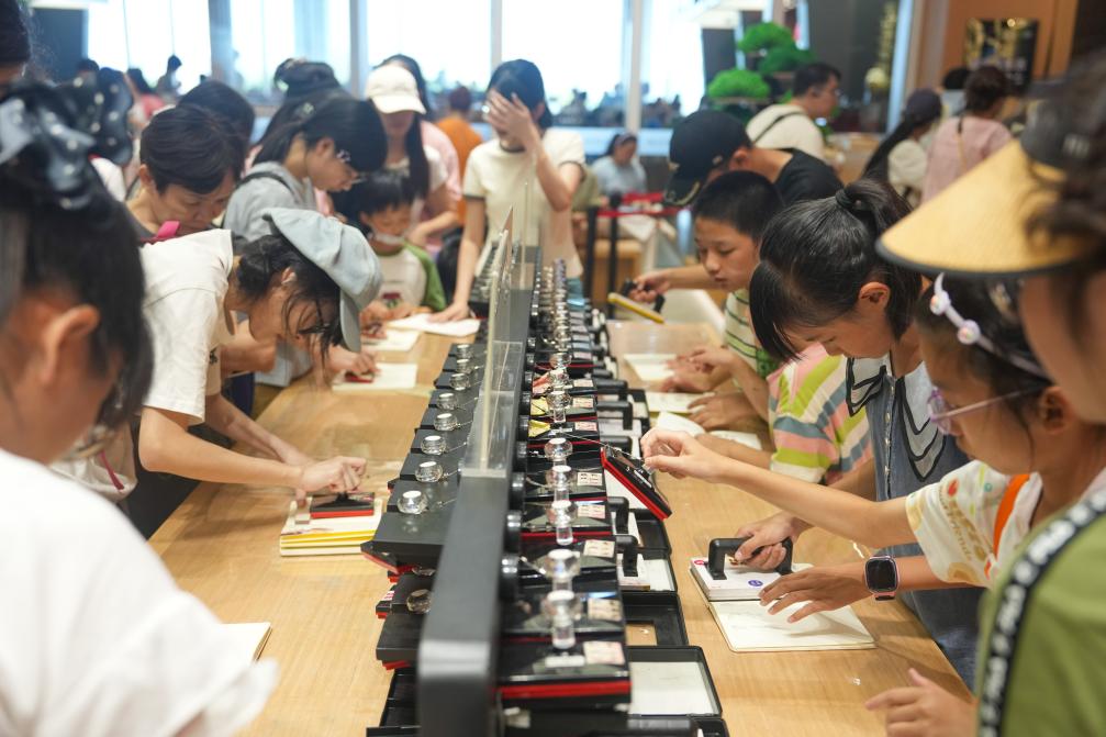 游客在湖南博物院博物館公園體驗文創(chuàng)產品。新華社記者 薛宇舸 攝