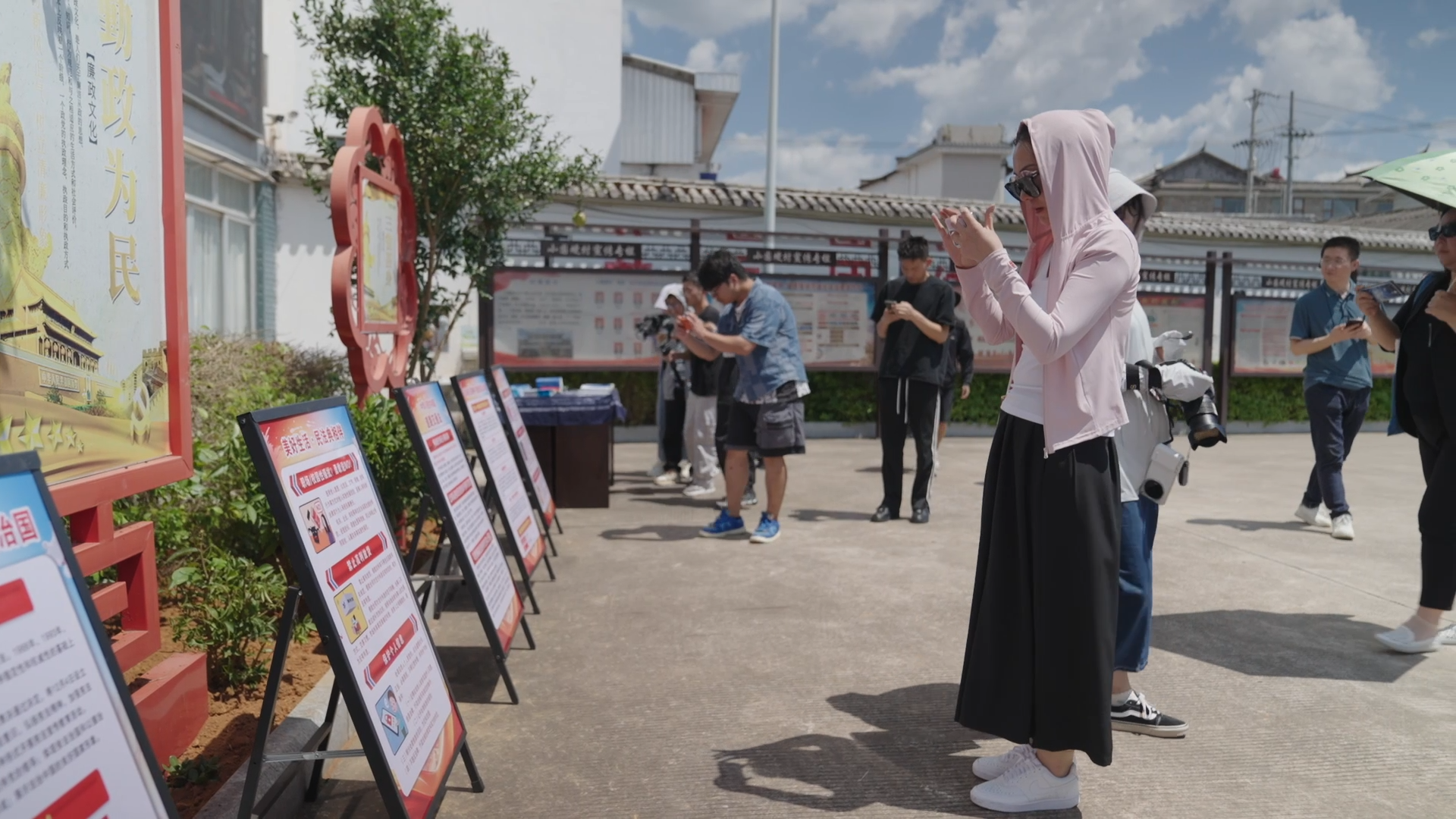 此行第一站,采訪團來到永建鎮(zhèn)小圍埂村。走進該村,青瓦白墻的民居,乳扇飄香的庭院,整潔干凈的村道,古色古香的楹聯(lián)和法治長廊……你能真切感受到村內(nèi)和諧、積極、向上的村風面貌。道路兩旁隨處可見各式法治宣傳標識和歷史名人事跡,別樣的景致讓村子顯得祥和、靜謐。