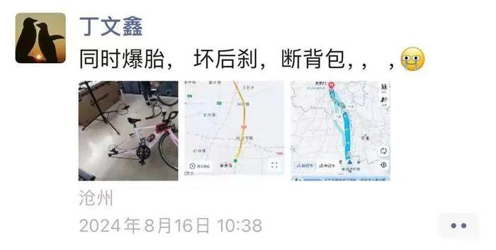 與此同時,丁文鑫也經(jīng)歷了中暑、遇到了暴雨,居無定所、食無常地、晝夜顛倒、爆胎、壞剎車更是常事……