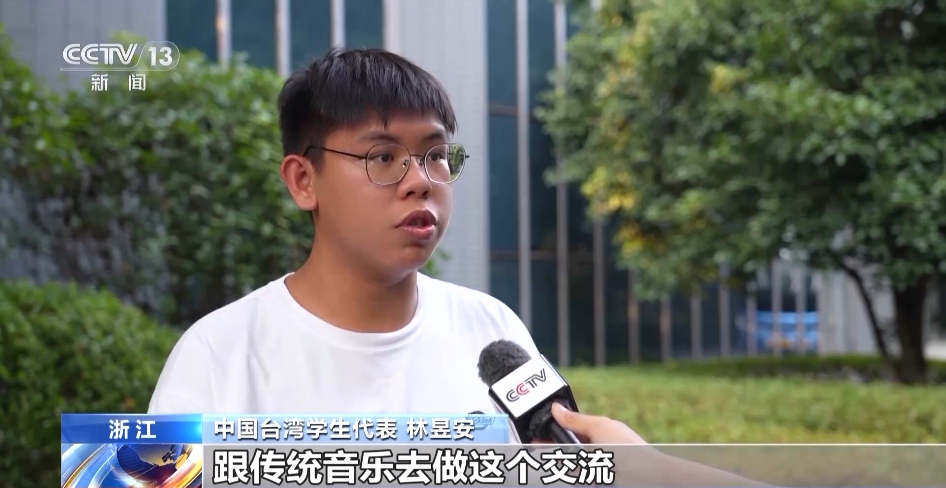 中國臺灣學(xué)生代表 林昱安:希望可以通過傳統(tǒng)技藝、傳統(tǒng)音樂去交流,讓兩岸一家親,可以通過這種交流方式,繼續(xù)傳承下去。