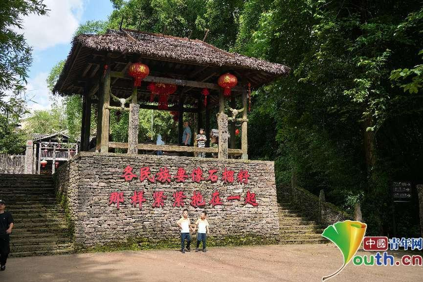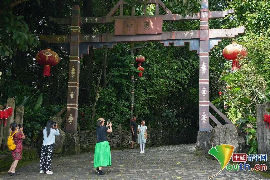 “中寨”寨門前,不少游客在打卡。中國青年網(wǎng)見習(xí)記者 曹偉 攝