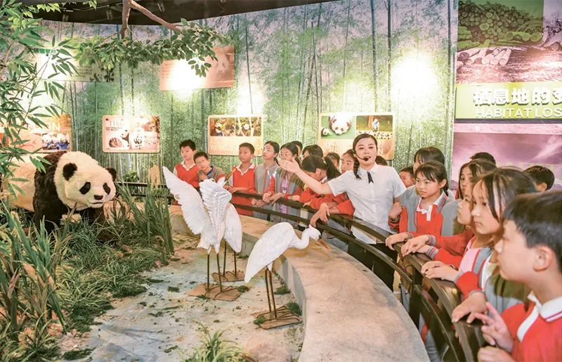 新時代以來,教育系統(tǒng)著力推動思想政治教育、專業(yè)教育與創(chuàng)新教育、社會實踐、志愿服務(wù)等的融合。圖為2024年5月17日,學(xué)生們在江西宜豐熊貓科技館開展“行走的思政課”主題科普教育活動,增強節(jié)約資源和保護(hù)自然環(huán)境意識。 人民圖片 周亮/攝