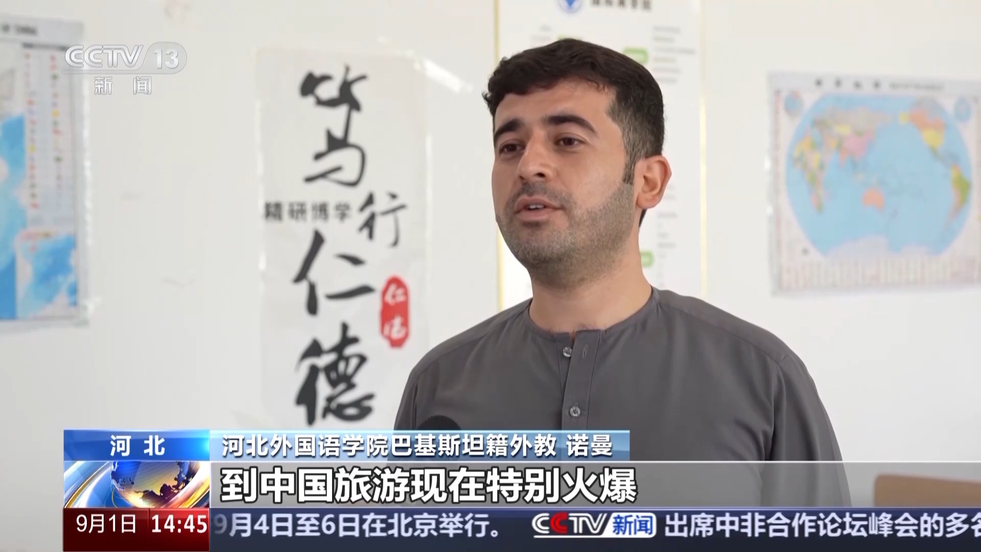 河北外國(guó)語(yǔ)學(xué)院巴基斯坦籍外教 諾曼:到中國(guó)旅游現(xiàn)在特別火爆,包括巴基斯坦在內(nèi),許多國(guó)家的人都來(lái)到中國(guó),愛(ài)上了中國(guó)的美食和文化,感受這里各種便捷舒適的生活方式,我身邊還有很多留學(xué)生朋友都很享受在這里的學(xué)習(xí)生活。