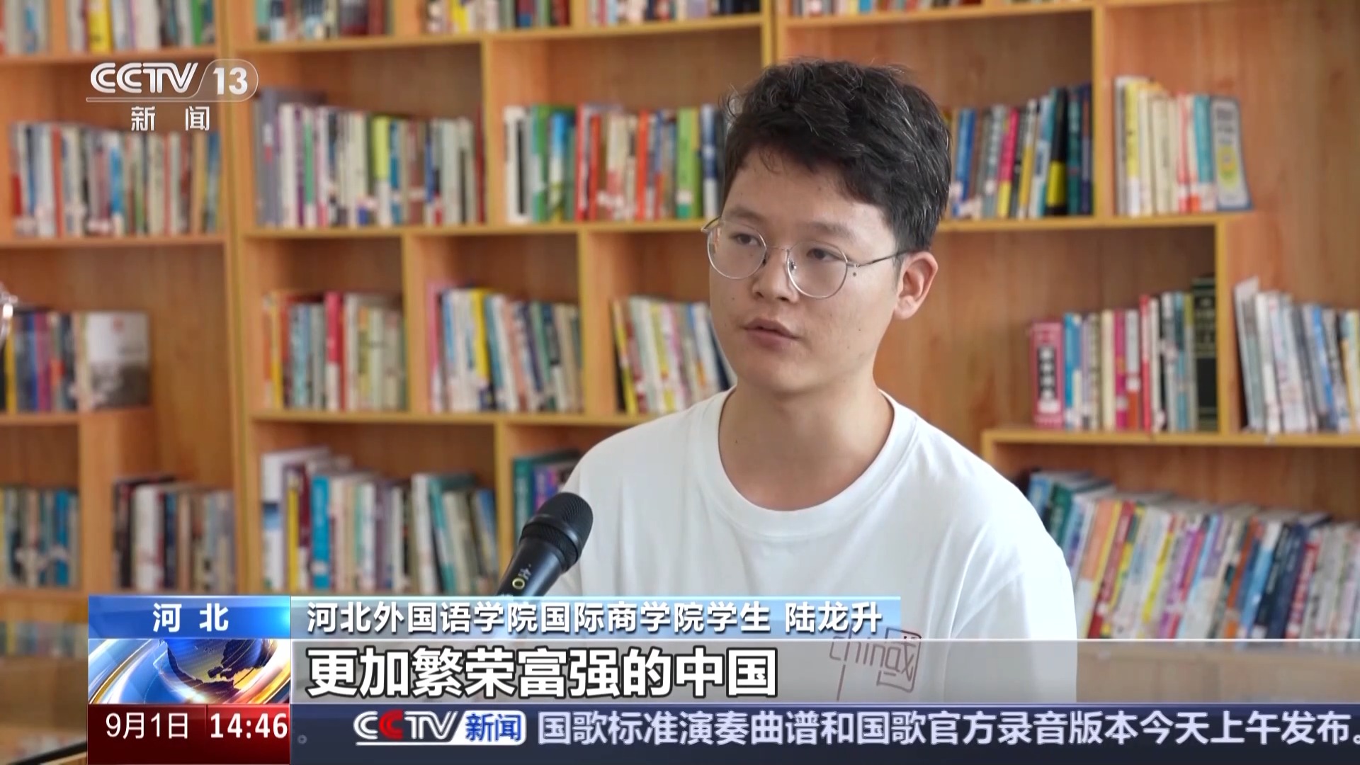 河北外國(guó)語(yǔ)學(xué)院國(guó)際商學(xué)院學(xué)生 陸龍升:我想通過(guò)自己的努力,以后可以讓更多的外國(guó)人看到真實(shí)的中國(guó),更加繁榮富強(qiáng)的中國(guó)。