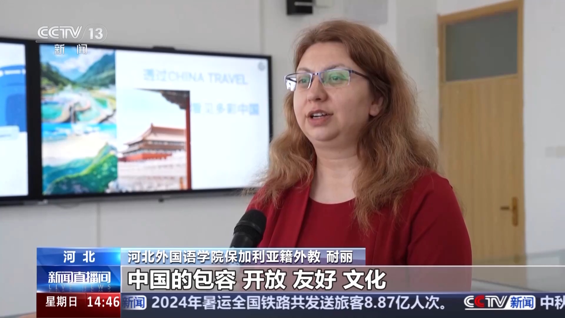 河北外國(guó)語(yǔ)學(xué)院保加利亞籍外教 耐麗:我是9年之前來(lái)到中國(guó)的,中國(guó)的包容、開(kāi)放、友好、文化讓我非常喜歡在這里,我在這里也一直看著中國(guó)的變化和發(fā)展,我希望跟更多人分享我在這里感受到的多彩的中國(guó)。