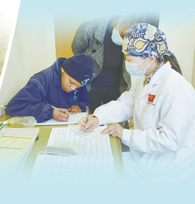 自1997年以來,中國湖北省承擔向萊索托王國派遣醫(yī)療隊的任務,醫(yī)療隊隊員在當地診治了大量常見病、多發(fā)病,治愈了眾多疑難病癥,深受萊索托民眾歡迎與尊敬。圖為第十八批中國援萊索托醫(yī)療隊醫(yī)生王琦正在接診患者。