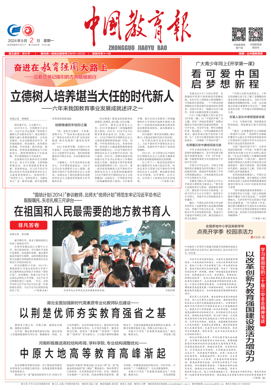到2035年建成教育強國,是黨中央作出的重要決策部署,是習(xí)近平總書記念茲在茲、殷切期盼的“國之大者”。教育系統(tǒng)牢記囑托,砥礪奮進,奮力書寫教育強國建設(shè)支撐引領(lǐng)中國式現(xiàn)代化的新篇章。日前,教育部新媒體矩陣推出“奮進在教育強國大路上——沿著總書記指引的方向砥礪前行”專欄,展示教育系統(tǒng)加快建設(shè)教育強國的生動實踐。