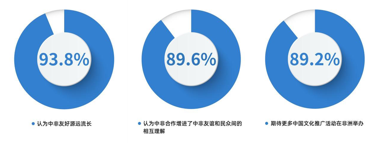 加強(qiáng)中非友好,中方講一個(gè)“親”字。國(guó)之交在于民相親,中非關(guān)系的根基和血脈在人民,中非關(guān)系發(fā)展更多面向人民。在調(diào)查中,高達(dá)93.8%的受訪者認(rèn)為中非友好源遠(yuǎn)流長(zhǎng);89.6%的受訪者認(rèn)為中非合作增進(jìn)了中非友誼和民眾間的相互理解;89.2%的受訪者期待更多中國(guó)文化推廣活動(dòng)在非洲舉辦。