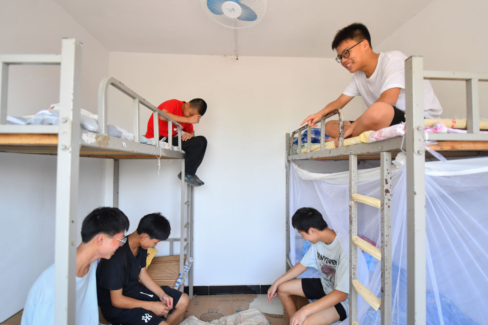 9月1日,在湖南華容縣團(tuán)洲學(xué)校,學(xué)生在宿舍聊天。新華社記者 陳澤國 攝
