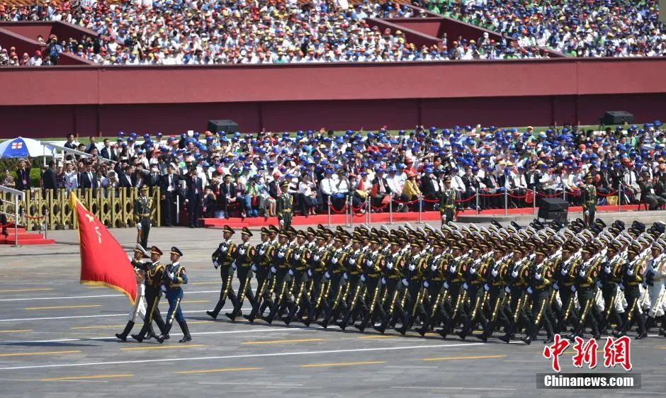 圖為2015年9月3日上午,紀(jì)念中國人民抗日戰(zhàn)爭暨世界反法西斯戰(zhàn)爭勝利70周年大會上,三軍儀仗隊通過天安門廣場。