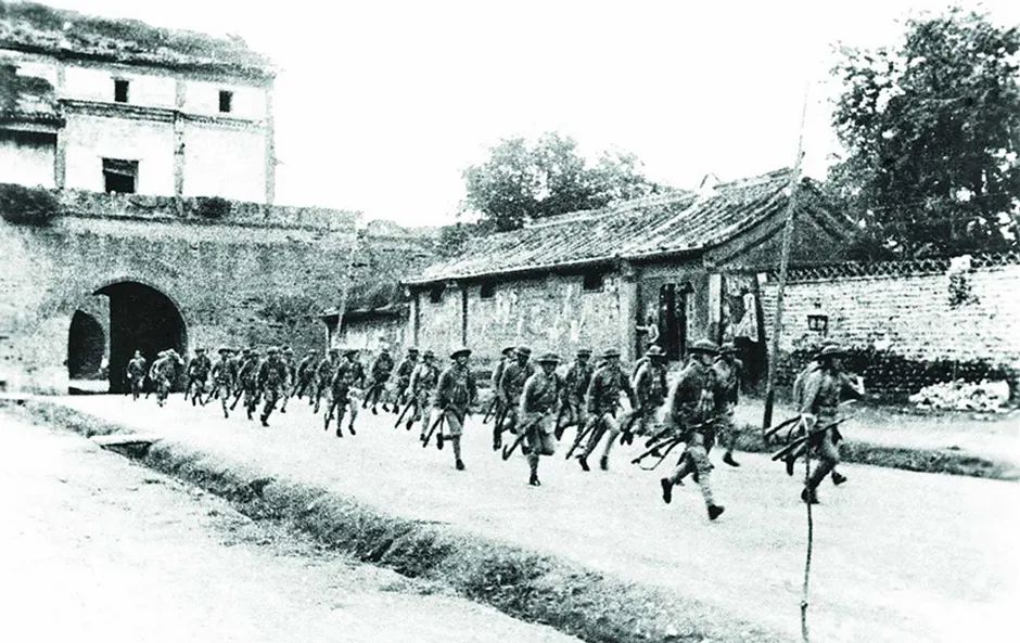 圖為駐守宛平城的中國軍隊奔赴盧溝橋抵抗日軍。