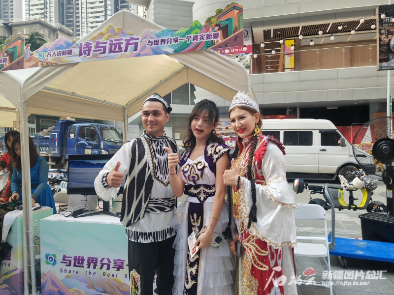 來自大連的王先生到廣州出差,途經(jīng)“萬人說新疆”活動現(xiàn)場,他停下了腳步。“這是第一次近距離了解新疆的非遺展品,第一次吃到正宗的新疆美食,我好喜歡,希望‘萬人說新疆’活動可以走進(jìn)我的家鄉(xiāng)大連?!蓖跸壬f,一直覺得新疆很遙遠(yuǎn),這一次短暫的接觸新疆人文和美景后,感覺詩與遠(yuǎn)方魅力無限,再遠(yuǎn)也值得去一趟。