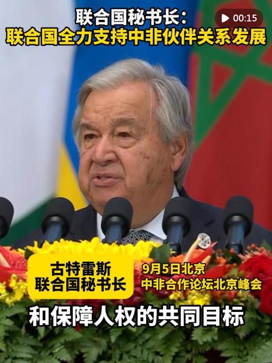 聯(lián)合國秘書長古特雷斯:聯(lián)合國全力支持中非伙伴關(guān)系發(fā)展