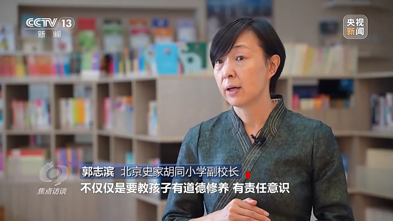 北京史家胡同小學(xué)副校長 郭志濱:不僅僅是要教孩子有道德修養(yǎng),有責(zé)任意識,還要有政治認(rèn)同,有家國觀念。我們作為老師育人、育孩子、育心,育的是什么?育的是我們民族的文化,育的是我們對國家的認(rèn)同和歸屬感。