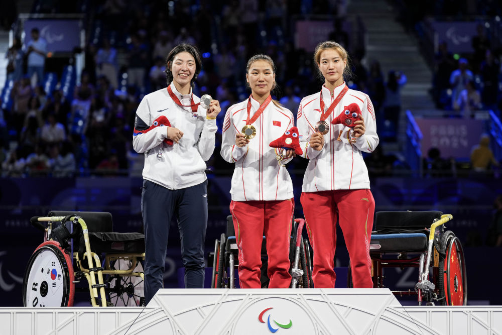 輪椅擊劍賽場迎來男、女重劍個人項目的對決。在男子重劍個人A級比賽中,孫剛憑借穩(wěn)健發(fā)揮,以15:12擊敗英國選手皮爾斯·吉利威爾,贏得金牌。陳遠東在女子重劍個人A級比賽中技壓群芳,以15:6輕取韓國選手權孝敬奪冠。