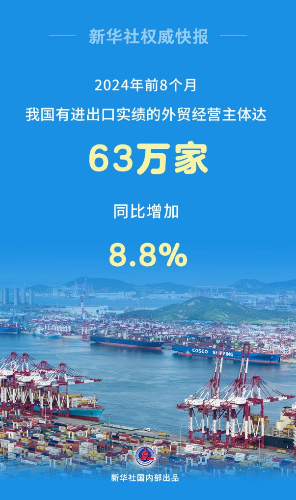 有進(jìn)出口實(shí)績的外貿(mào)經(jīng)營主體達(dá)63萬家
