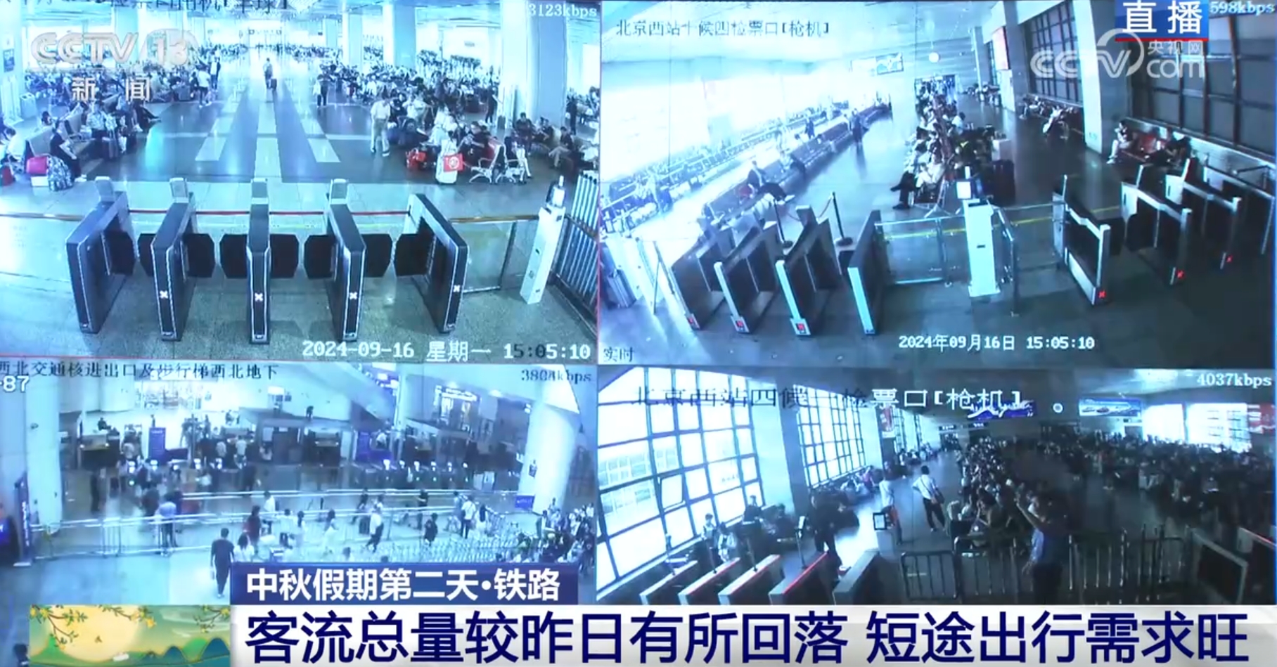 9月16日是中秋假期的第二天,哪些地方是大家的熱門出游地?先來(lái)看看鐵路出行。16日,鐵路出行客流以短途探親客流為主,預(yù)計(jì)發(fā)送旅客1180萬(wàn)人次。16日鐵路短途出行需求旺盛,詳細(xì)情況,我們馬上連線正在國(guó)鐵集團(tuán)運(yùn)輸調(diào)度指揮大廳采訪的總臺(tái)央視記者楊麗君。