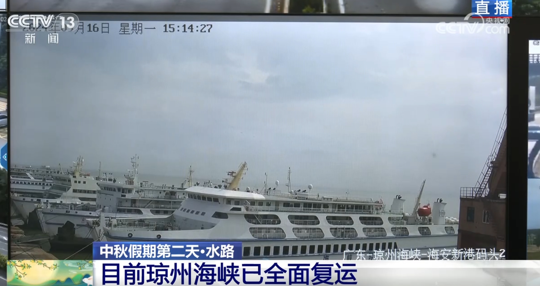 接下來(lái)看到的是瓊州海峽??谛潞8劭蜐L運(yùn)輸裝載現(xiàn)場(chǎng)的畫面,目前車輛和人員正在有序排隊(duì)上船。臺(tái)風(fēng)“摩羯”過(guò)后,在海事、客滾運(yùn)輸企業(yè)等多方共同努力下,目前瓊州海峽客滾運(yùn)輸航線已全面復(fù)運(yùn),運(yùn)力充足。海南海事部門已開啟客滾船專項(xiàng)安檢活動(dòng),并且強(qiáng)化船舶現(xiàn)場(chǎng)監(jiān)督檢查,防范船舶“帶病”營(yíng)運(yùn),全力保障中秋假期重點(diǎn)時(shí)段瓊州海峽水上安全形勢(shì)平穩(wěn)。