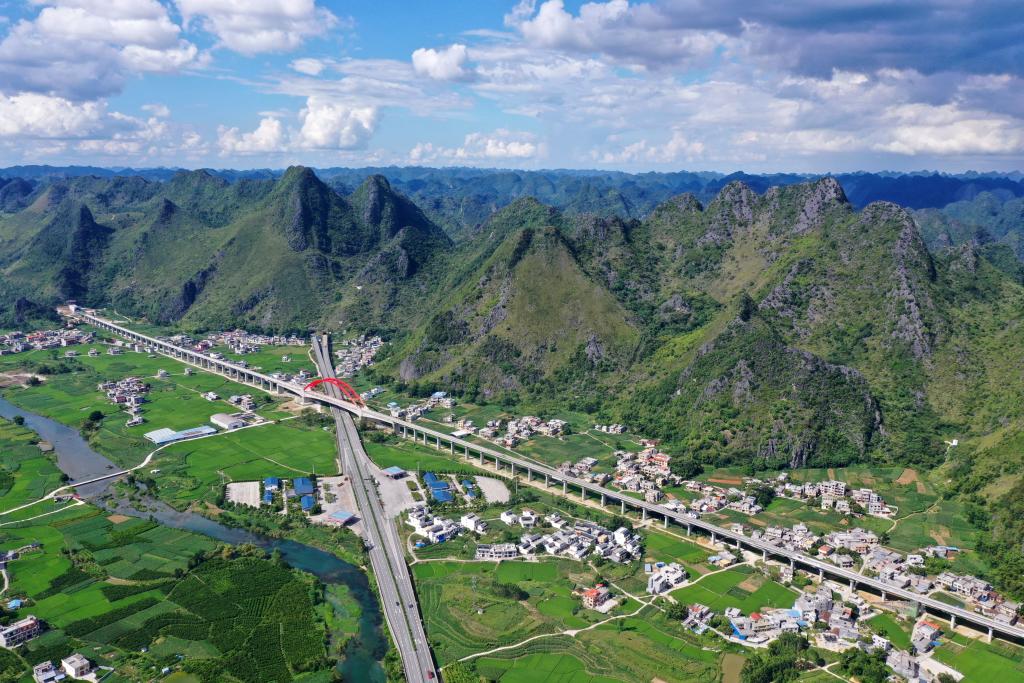 這是廣西都安瑤族自治縣境內的交通路網(wǎng)(2021年8月31日攝,無人機照片)。新華社記者 陸波岸 攝