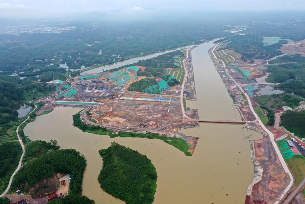 這是施工建設中的廣西平陸運河青年樞紐(2023年8月1日攝,無人機照片)。新華社記者 陸波岸 攝