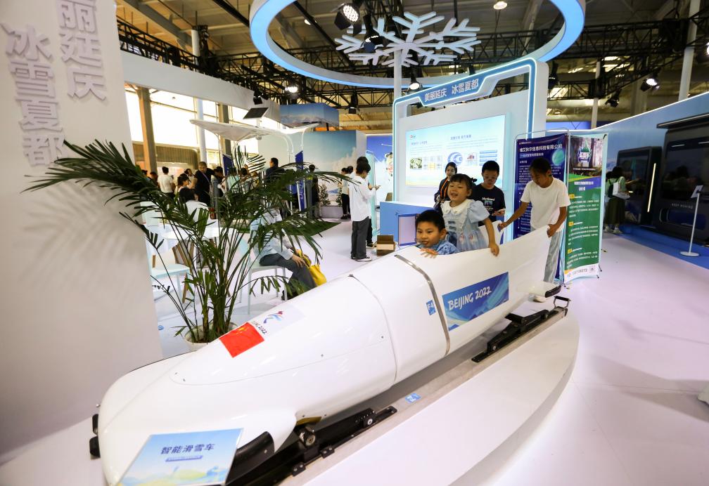9月16日,在服貿會首鋼園區(qū),小朋友在“美麗延慶 冰雪夏都”展臺參觀體驗。新華社記者 鄒廣萍 攝