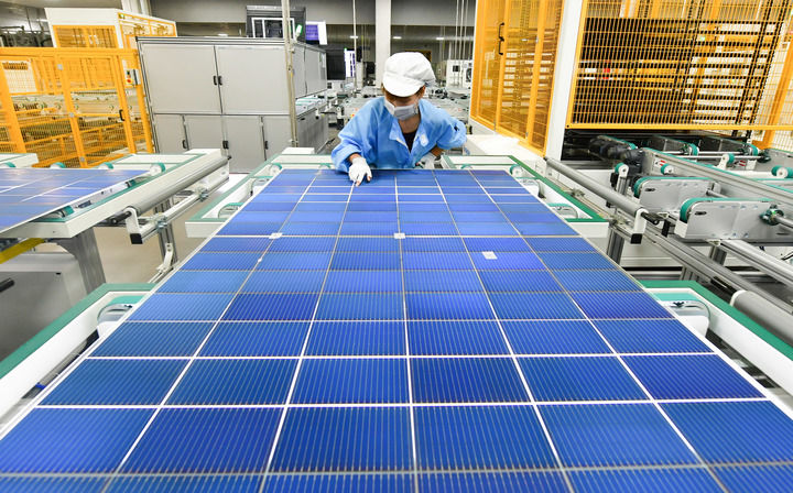這是安徽華晟新能源科技股份有限公司的異質(zhì)結(jié)光伏電池及組件工廠內(nèi)景(8月24日攝)。