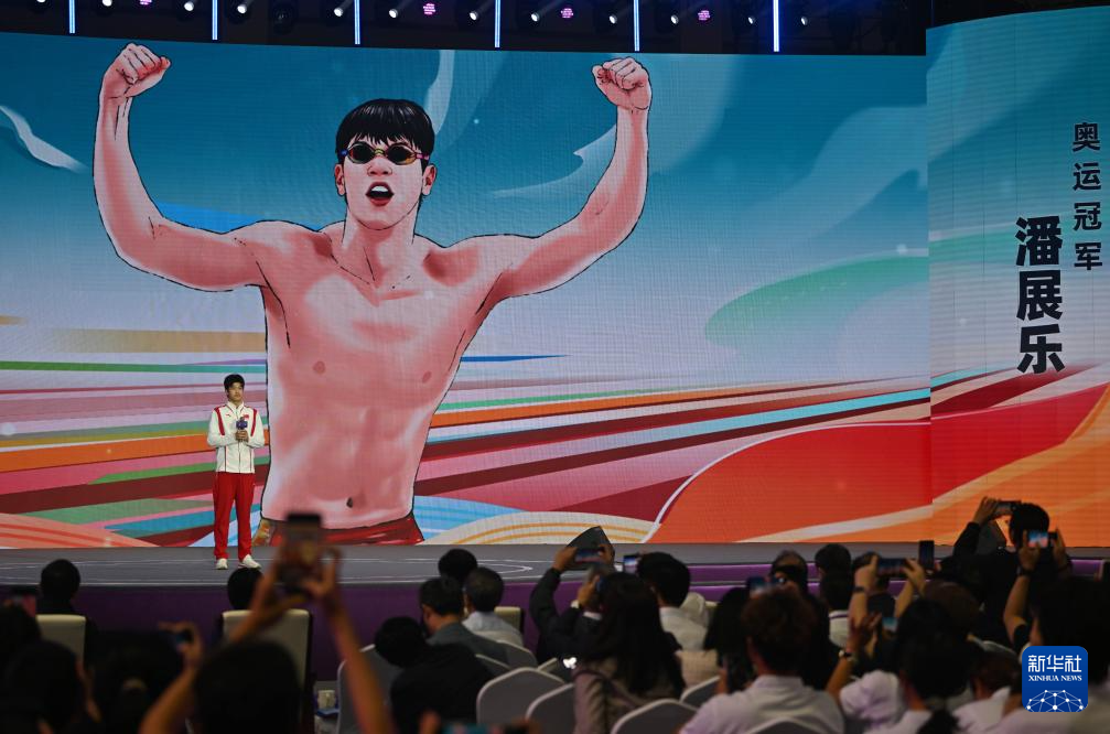 9月21日,奧運(yùn)冠軍潘展樂在臺上演講。新華社記者 李然 攝