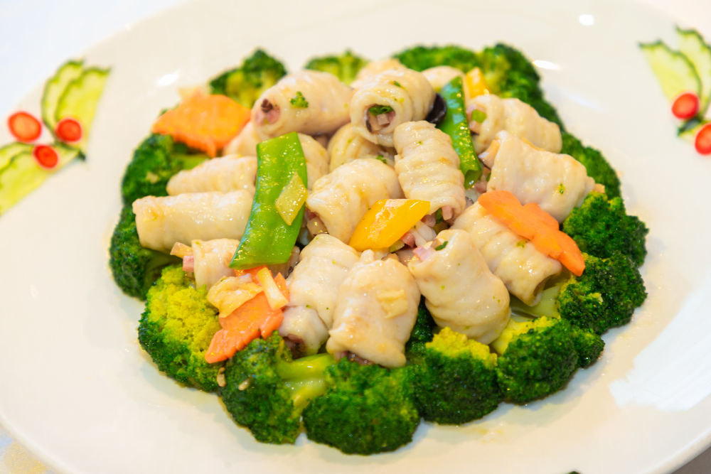 2024年8月20日,順德名廚制作的順德名菜碧綠縐紗魚卷。何冠洪 攝
