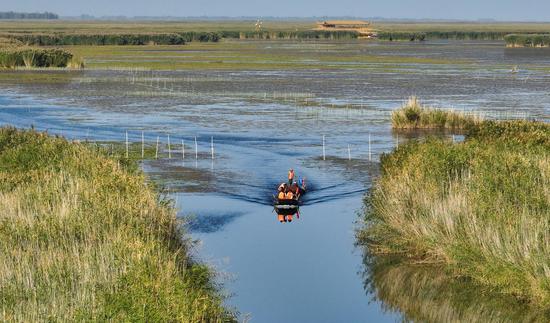 金秋時(shí)節(jié),位于新疆維吾爾自治區(qū)巴音郭楞蒙古自治州博湖縣境內(nèi)的博斯騰湖的螃蟹迎來(lái)豐收季,波光粼粼的湖面上,穿梭的漁船與蘆葦、睡蓮、沙漠構(gòu)成一幅生動(dòng)的秋日畫(huà)卷。