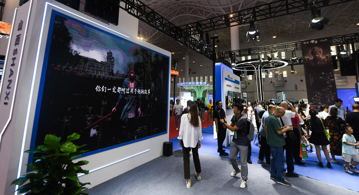 數(shù)博會(huì)上,國產(chǎn)游戲《黑神話:悟空》備受矚目。山西展團(tuán)以游戲中“悟空”路線為主題,重點(diǎn)展示了一批介紹山西古建筑、歷史文化遺產(chǎn)的出版物,“悟空拍照區(qū)”成了“熱門打卡地”。