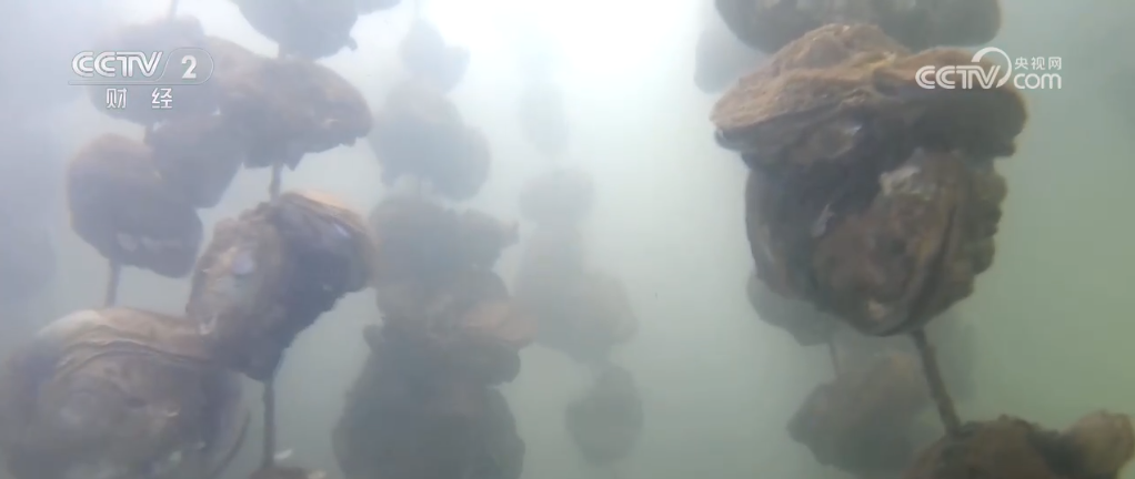 通過(guò)水下鏡頭可以看到,蠔苗被放下去的時(shí)候就固定在了水泥石餅上,每串石餅大約固著有40個(gè)。養(yǎng)殖戶們說(shuō),這種吊樣的方式不僅讓生蠔長(zhǎng)得好,還能方便捕撈。像1.6畝大小的蠔排可以吊養(yǎng)蠔苗大概1.2萬(wàn)串,整個(gè)基地蠔苗的年產(chǎn)量達(dá)13.45萬(wàn)噸。