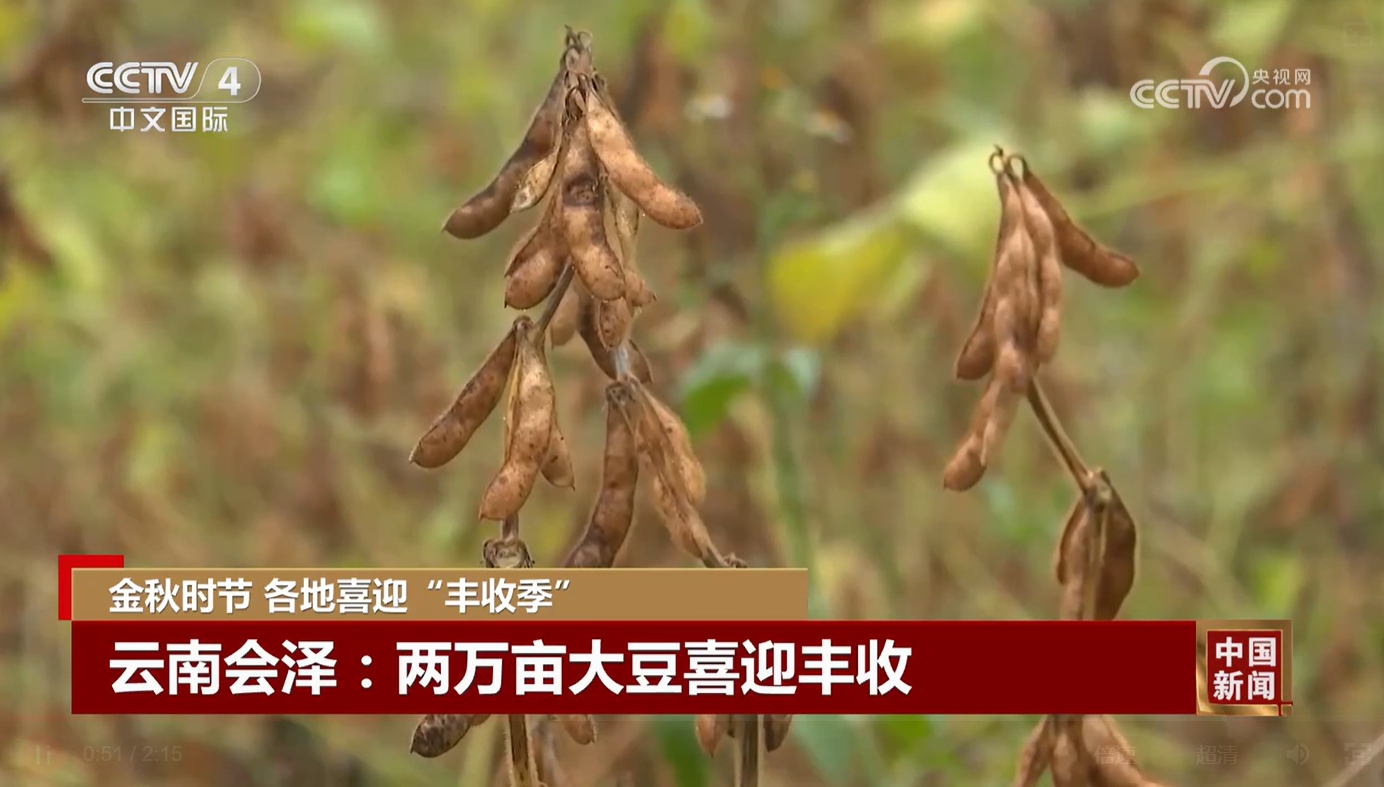 在烏蒙山間的云南會澤縣,兩萬多畝大豆喜迎豐收。在當(dāng)?shù)氐拇蠖狗N植示范區(qū)里,金黃的豆葉匯聚成一片金色海洋,飽滿圓潤的大豆莢掛滿枝頭。