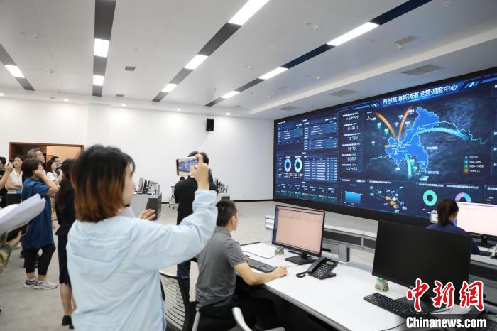 圖為采訪團(tuán)成員走訪西部陸海新通道運(yùn)營調(diào)度中心。梁欽卿 攝
