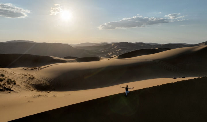 巴丹吉林沙漠的魅力,讓領(lǐng)略過的人意猶未盡、魂牽夢繞。德國探險家布魯諾·鮑曼于1994年首次徒步穿越巴丹吉林,從此與這片沙漠結(jié)下不解之緣。在過去30多年中,他多次來到巴丹吉林,用文字和鏡頭記錄這里的神秘風(fēng)貌,并出版了《我的世界 沙漠之旅》一書。“巴丹吉林沙漠是地球上最迷人的地方之一,我計劃明年再次來這里進(jìn)行駱駝之旅。”鮑曼說。