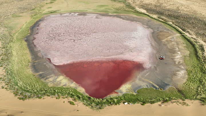 2024年7月30日拍攝的巴丹吉林沙漠中的紅海子(無人機(jī)照片)。