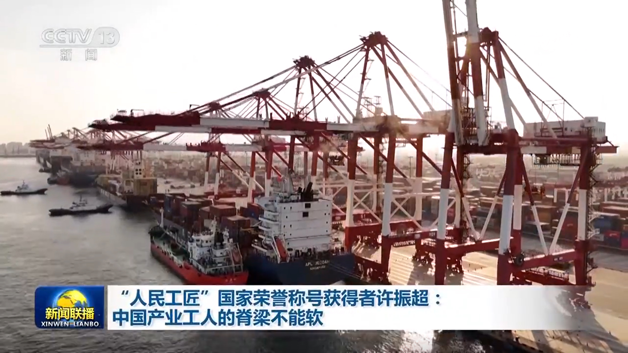 央視網消息(新聞聯(lián)播):他帶領團隊九次打破集裝箱裝卸的世界紀錄,開創(chuàng)了全國聞名的“振超效率”,他就是“人民工匠”國家榮譽稱號獲得者許振超。