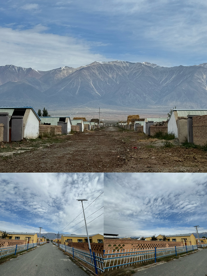 博爾塔拉蒙古自治州溫泉縣扎勒木特鄉(xiāng)浩圖爾哈隊(duì)的定居興牧點(diǎn),人車(chē)道和牧道區(qū)劃分清晰,干凈整潔。新華網(wǎng)發(fā)