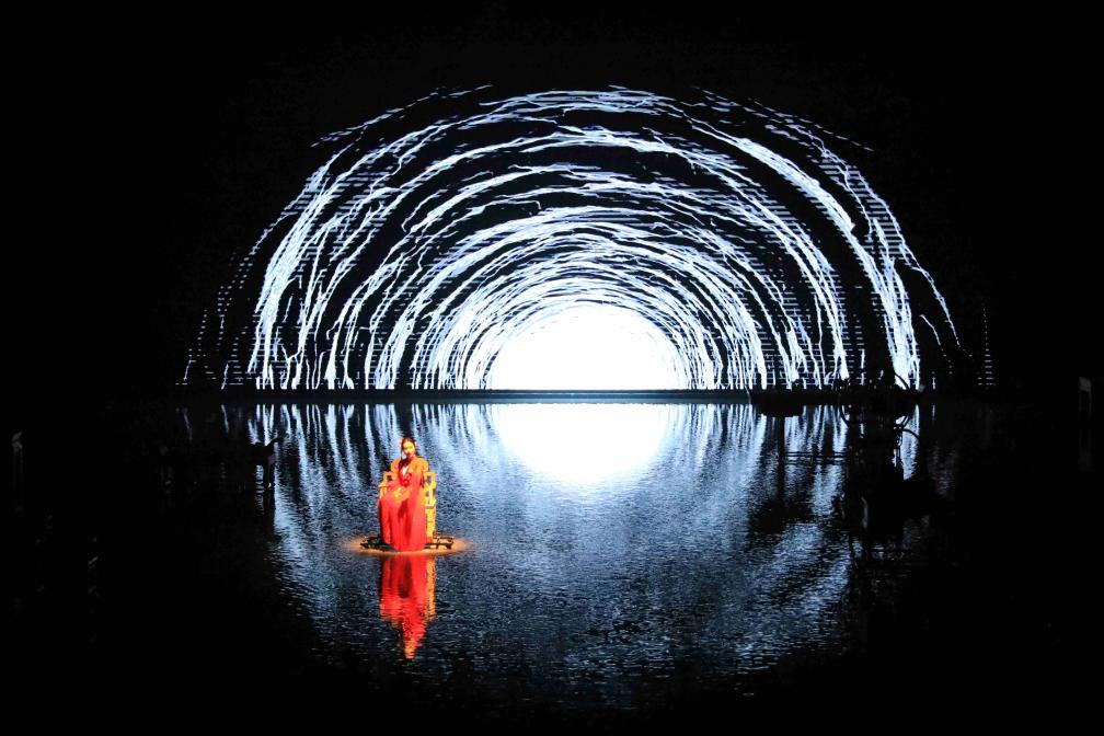 36扇高大的雕花木門輕啟,演員曼妙起舞;舞臺(tái)上光影變幻,不時(shí)落下層層水簾……“太震撼了!”觀眾們不約而同發(fā)出感嘆。