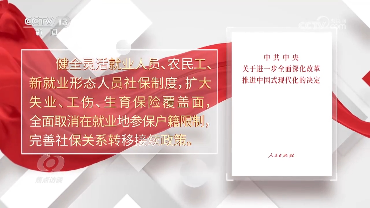 今天節(jié)目繼續(xù)聚焦“開辟中國式現(xiàn)代化廣闊前景”。我們的目標(biāo)很宏偉,也很樸素,歸根結(jié)底就是讓人民過上更好的日子。習(xí)近平總書記說,孩子的撫養(yǎng)教育,年輕人的就業(yè)成才,老年人的就醫(yī)養(yǎng)老,是家事也是國事。的確,中國式現(xiàn)代化民生為大。黨和國家是把這些事放在心上的。黨的十八大以來,我國建成世界上規(guī)模最大的醫(yī)療衛(wèi)生體系,全國各級(jí)教育普及程度達(dá)到或超過中高收入國家平均水平,建成世界上規(guī)模最大的社會(huì)保障網(wǎng)。面對(duì)新形勢新挑戰(zhàn),社會(huì)保障也在不斷調(diào)整,發(fā)揮兜底作用。黨的二十屆三中全會(huì)圍繞“健全保障和改善民生制度體系”作出一系列重要改革部署,提出健全靈活就業(yè)人員、農(nóng)民工、新就業(yè)形態(tài)人員社保制度。這就要求面對(duì)新情況新問題,不斷探索完善符合人民群眾需要的社保體系?,F(xiàn)在,這項(xiàng)工作在全國多個(gè)試點(diǎn)已經(jīng)取得了成效。