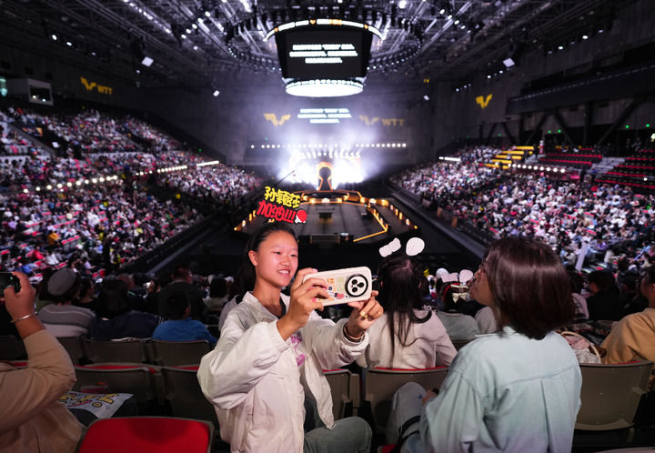 10月3日,觀眾來到首鋼園區(qū)觀看世界乒乓球職業(yè)大聯(lián)盟(WTT)中國大滿貫賽。新華社記者 張晨霖 攝
