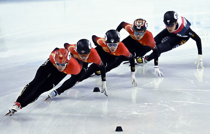 10月3日,朱祎玎、李坤、張柏浩(左一至左三)在比賽中。當(dāng)日,在2024上海超級(jí)杯短道速滑男子1000米A組決賽中,中國選手朱祎玎以1分26秒848的成績獲得冠軍,李坤和張柏浩分獲亞軍和季軍。新華社發(fā)(陳浩明攝)