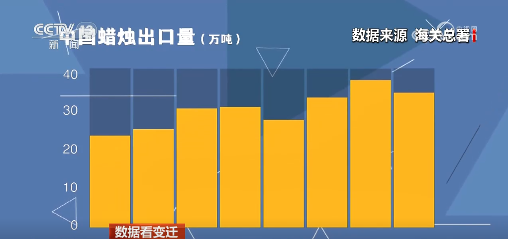 隨著電力普及,蠟燭在國內(nèi)逐漸淡出人們的視線,但卻在海外大放異彩。近10年來,我國蠟燭年度出口量邁過30萬噸關(guān)口,和中國綠茶一年的出口量相當。中國蠟燭“漂洋過海”去往全球160多個國家和地區(qū),穩(wěn)坐全球蠟燭貿(mào)易“頭把交椅”。國內(nèi)蠟燭相關(guān)企業(yè)增加到約1.02萬家,近50%的企業(yè)成立于10年之內(nèi),傳統(tǒng)的蠟燭產(chǎn)品向高附加值邁進。