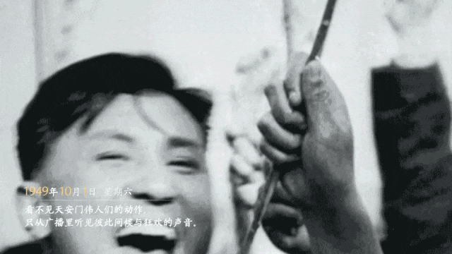 看不見天安門偉人們的動(dòng)作,只從廣播里聽見彼此問(wèn)候與狂歡的聲音。
