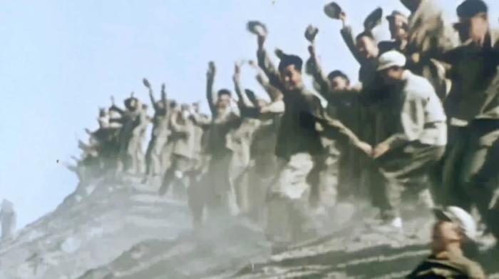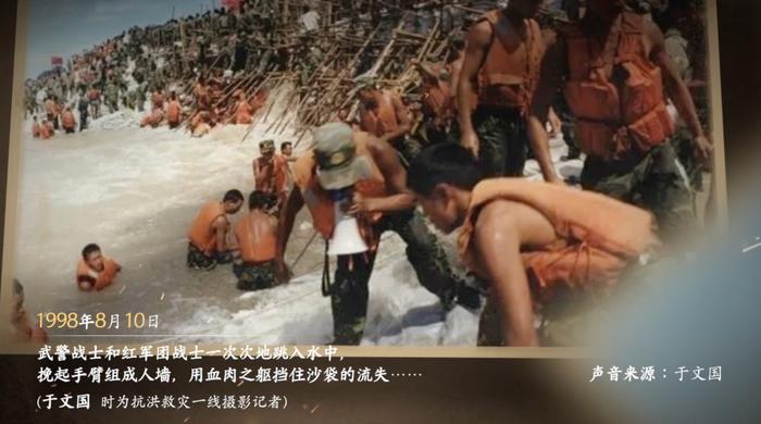 武警戰(zhàn)士和紅軍團(tuán)戰(zhàn)士一次次地跳入水中挽起手臂組成人墻,用血肉之軀擋住沙袋的流失……