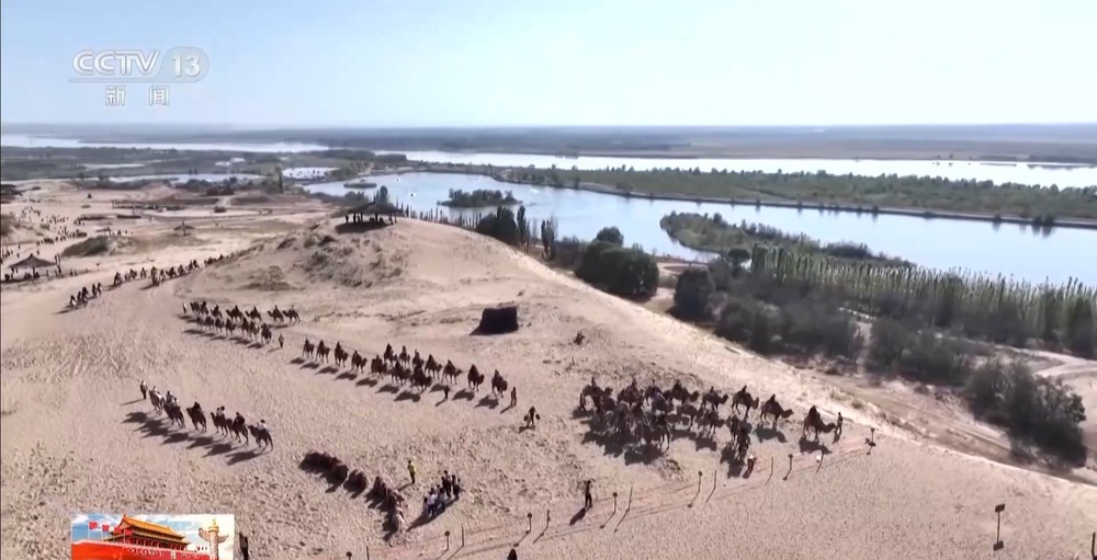 總臺記者 朱達(dá):寧夏銀川市黃沙古渡景區(qū)以一處千年古渡命名,匯集了黃河、沙漠、湖泊、濕地和田園等多種自然風(fēng)光。十一期間全國各地的游客來到黃沙古渡, 一方面可以欣賞大漠風(fēng)光、感受黃河文化 ,另一方面可以體驗(yàn)騎駱駝、沙漠沖浪和飛索等多種項(xiàng)目。