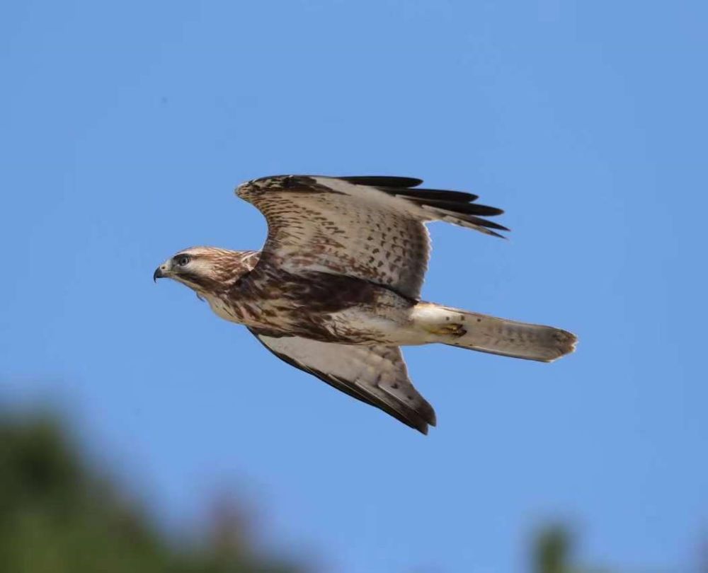9月23日,一只普通鵟飛越老鐵山。(遼寧蛇島老鐵山國家級自然保護區(qū)供圖)