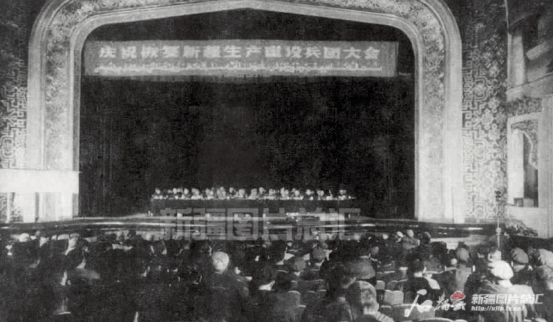1982年6月1日,慶祝恢復(fù)新疆生產(chǎn)建設(shè)兵團(tuán)大會(huì)在烏魯木齊舉行。新疆圖片總匯資料圖片