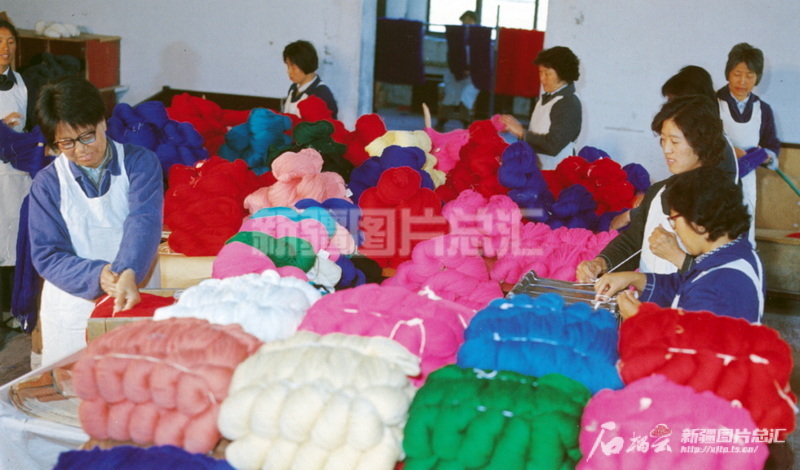 八一毛紡織廠生產(chǎn)的蜜蜂牌毛線,成為市場(chǎng)俏銷商品(1982年攝)。新疆圖片總匯資料圖片