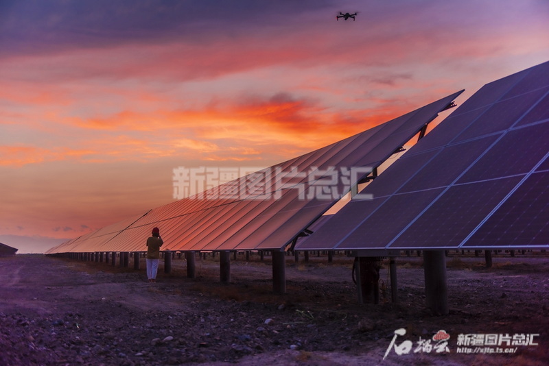 2024年8月20日,新疆生產(chǎn)建設(shè)兵團(tuán)第七師124團(tuán)10萬(wàn)千瓦光伏發(fā)電項(xiàng)目建設(shè)現(xiàn)場(chǎng),工人在檢查光伏板。田國(guó)建攝