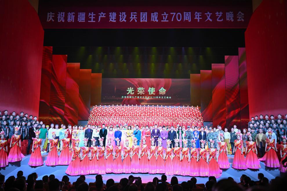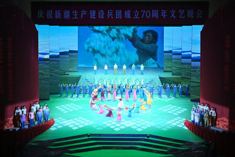 10月6日,慶祝新疆生產建設兵團成立70周年文藝晚會《光榮使命》在烏魯木齊文化中心大劇院舉行。